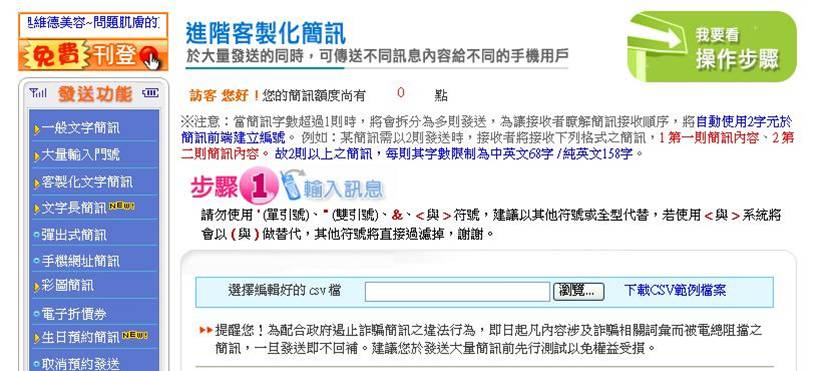 3.大量簡訊發送(3)進階客製化簡訊 → 不同內容,不同手機門號(進階客製化) 針對不同客戶同時發送不同簡訊內容(完全由客戶自訂簡訊內容) |