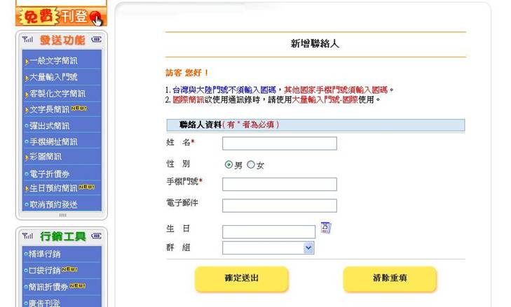 | --新增聯絡人(單一新增) | ||||||