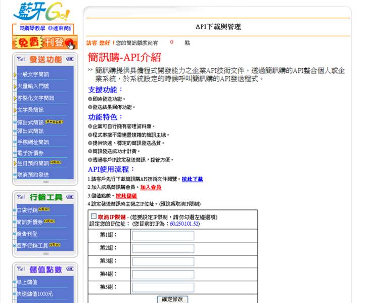 5.API下載與管理(業者透過API和『簡訊購』串聯自動發送) |