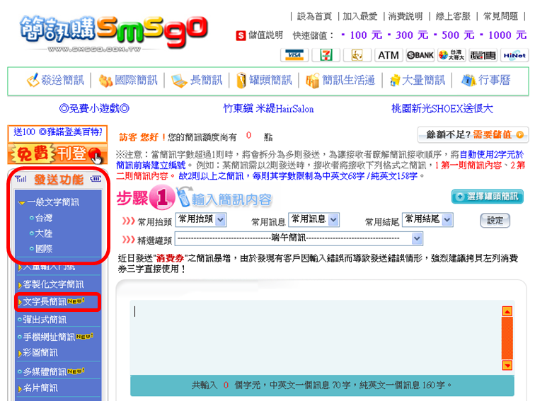 1.一般文字簡訊/文字長簡訊/國際簡訊發送介紹 |
